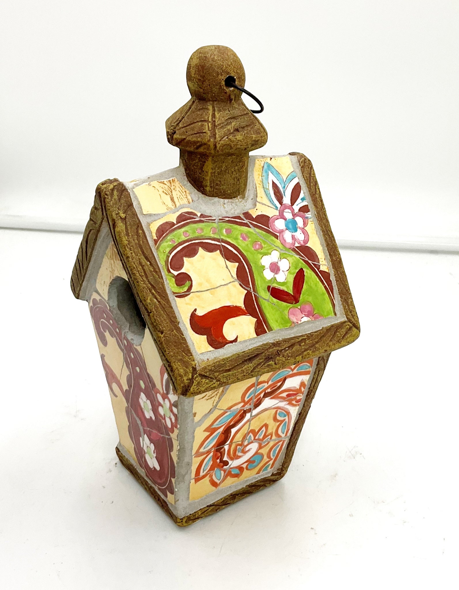 A lovely concrete and porcelain mosaic birdhouse by MaxCera.