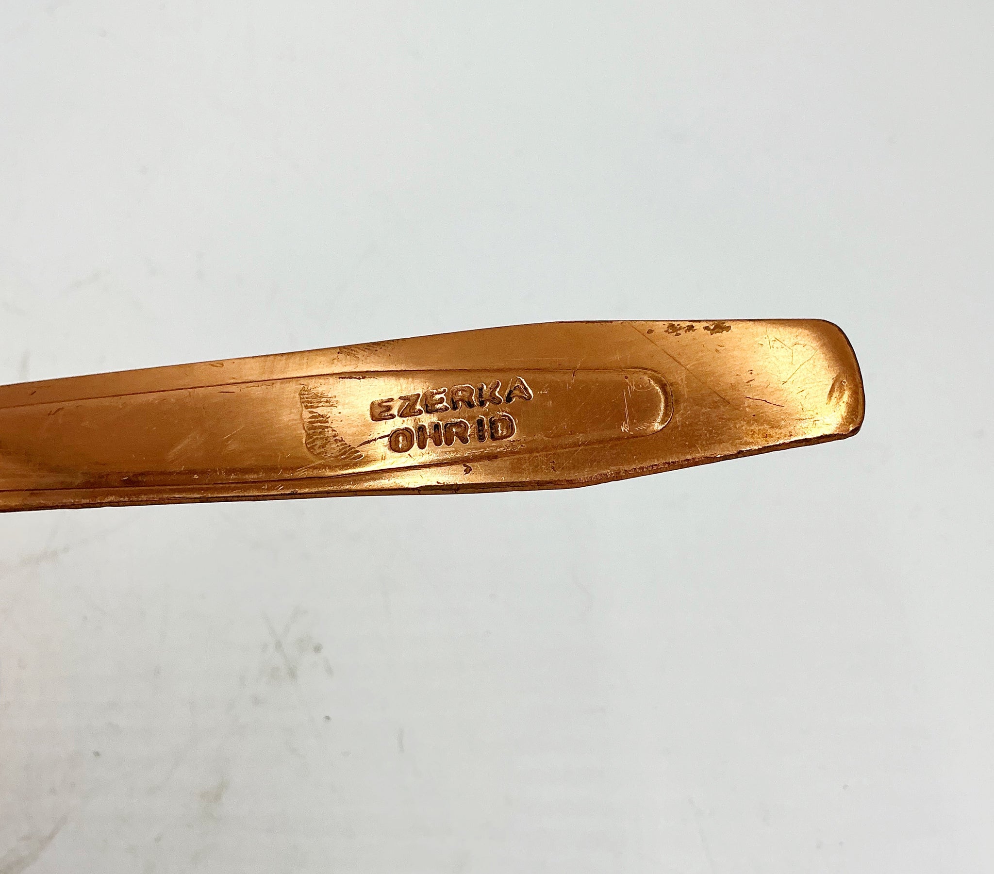 A copper Turkish Coffee pot, stamped Ezerka Ohrid