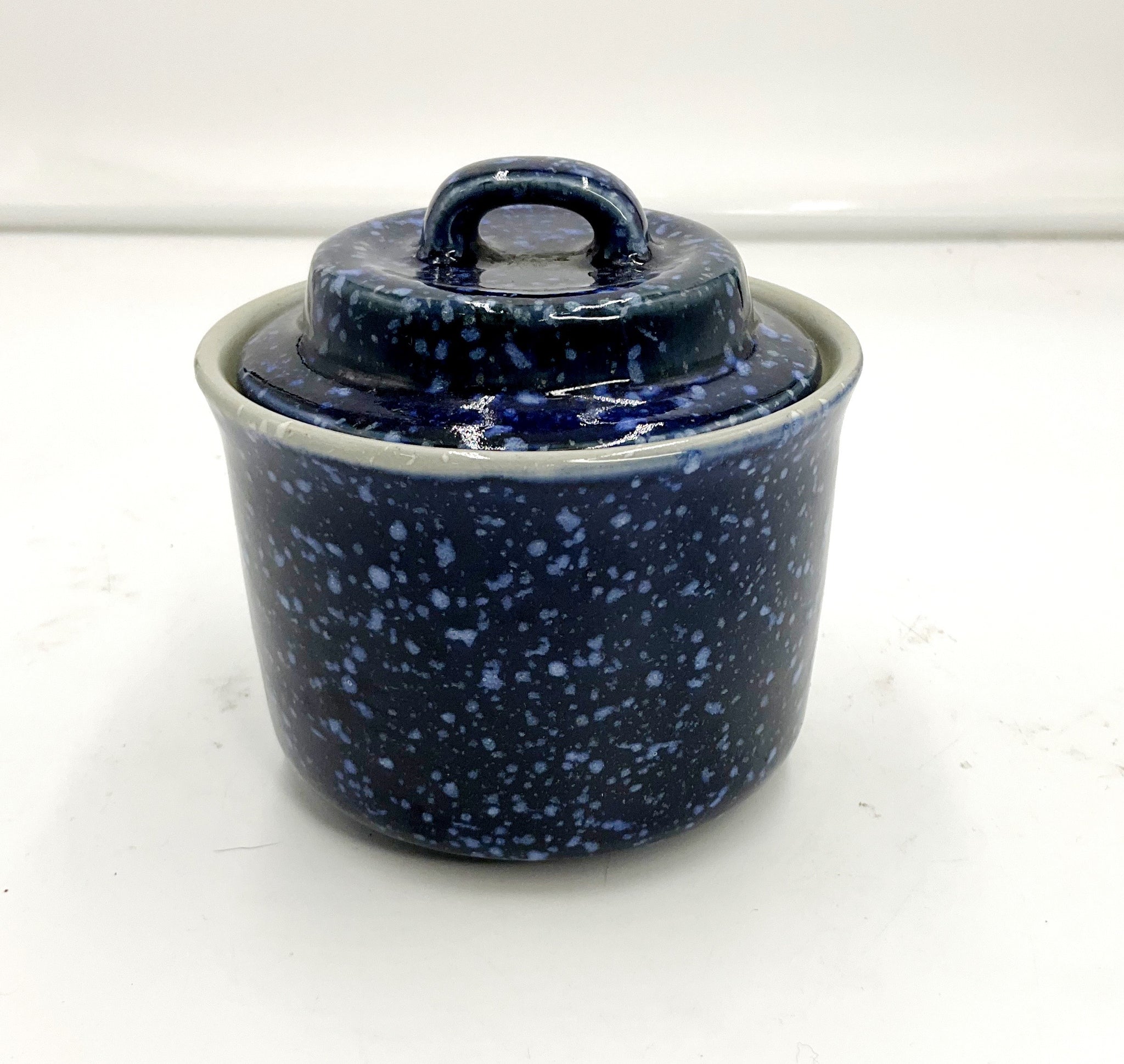 A cute little Otagiri blue speckled crock/sugar bowl, from Japan