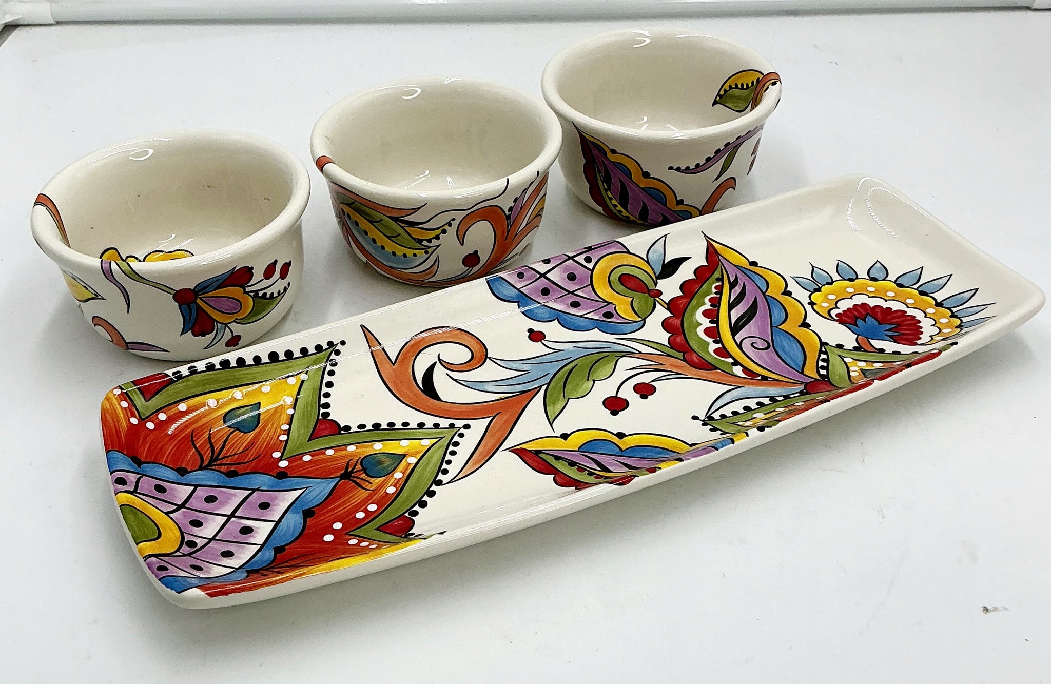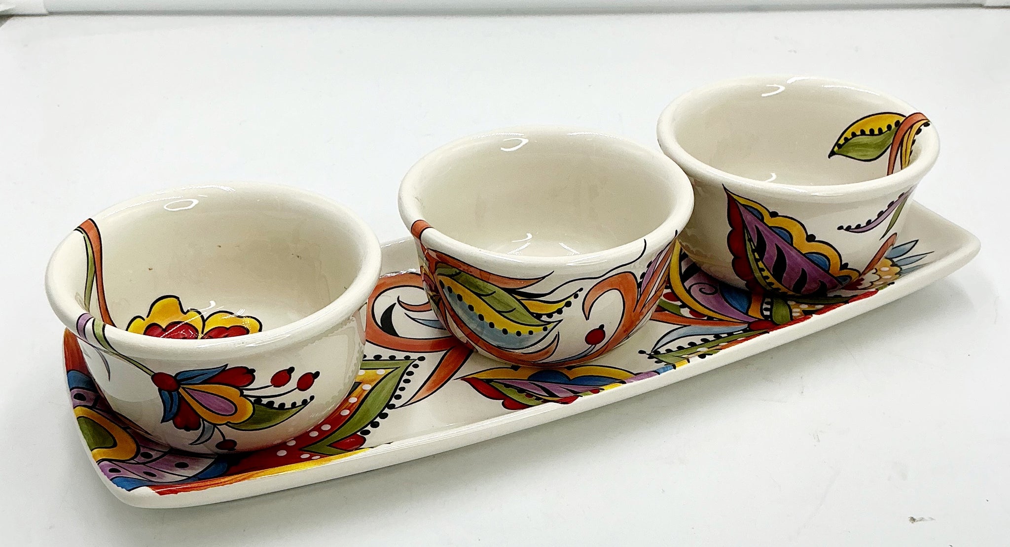 bowls 2 x 4”, tray 13.5. X 5”