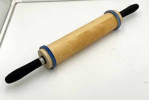 A Drew Barrymore solid rolling pin with silicone handles and removeable silicone depth rings for cookie dough.